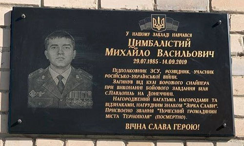 На Донбасі від кулі снайпера загинув майор Михайло Цимбалістий з Тернопільщини // Новинарня. — 2019. — 16 вересня.